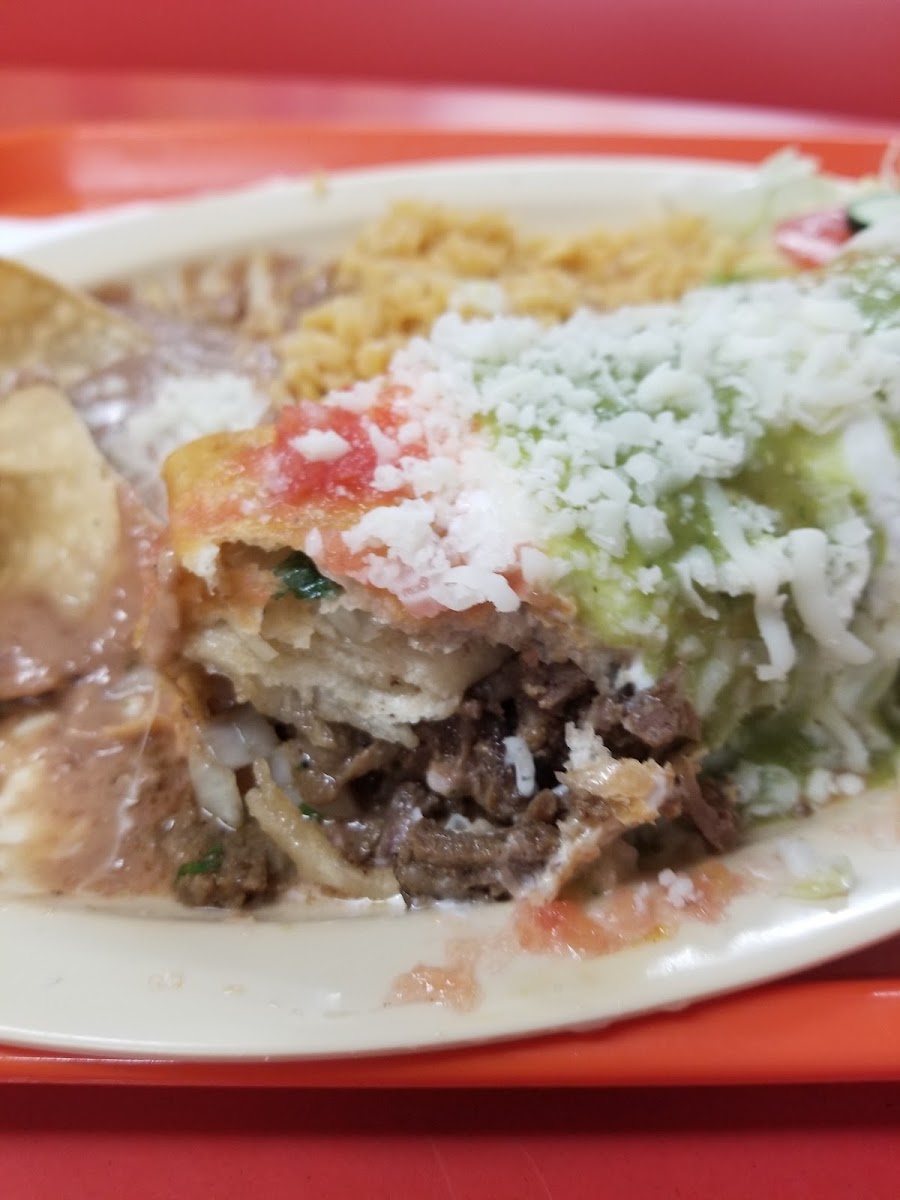 Delicious Mexican food. Had the cheese enchilada in green sauce, hard taco chicken, menudo with all the condiments, green chilies burrito, and bean & cheese burrito. All yum!